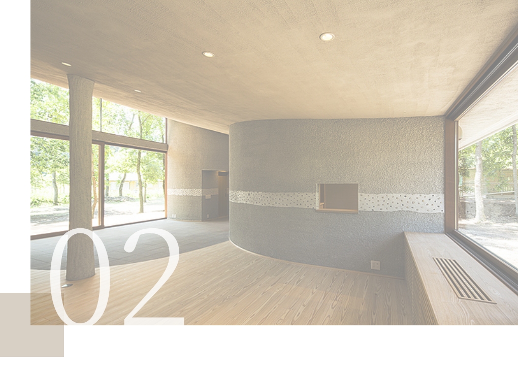 住まいの中で大きな面積を占める壁。高千穂では全てのお住まいで、100%自然素材のシラス壁を採用。消臭・調湿に優れ、家の中は自然の中にいるような快適性。